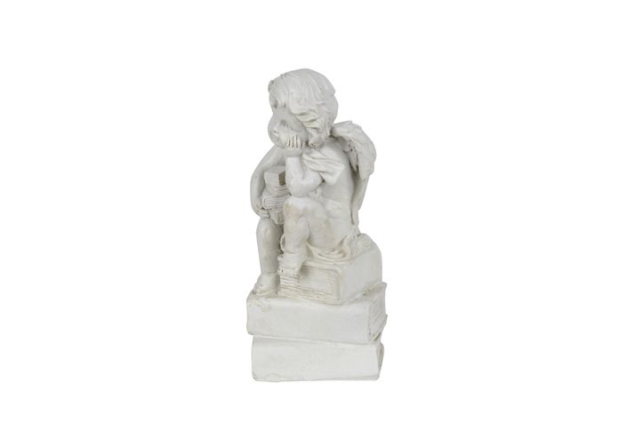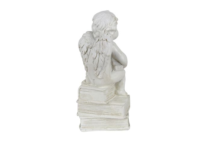 Vacker dekorationsängel som sitter på böcker, tillverkad av polystone. Fin som gravdekoration.