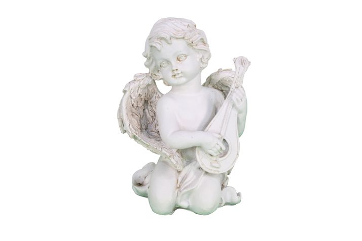 Vacker dekorationsängel med instrument, tillverkad av polystone. Fin som gravdekoration.