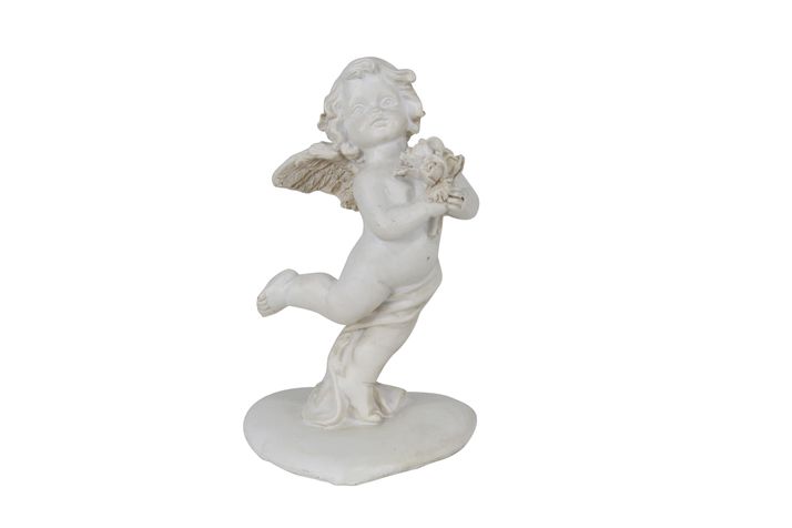 Vacker dekorationsängel med en bukett, tillverkad av polystone. Fin som gravdekoration.