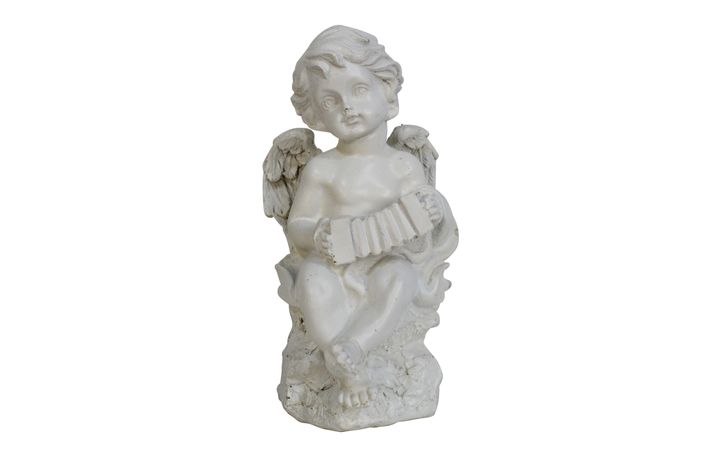 Vacker dekorationsängel med instrument, tillverkad av polystone. Fin som gravdekoration.
