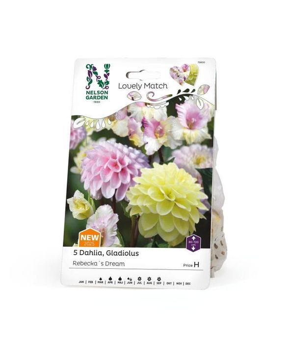 Ljuvlig blandning av en gladiol och två dahlior i finstämda rosa toner som tillammans blir en perfekt bukett. Underbar i både kruka och rabatt.