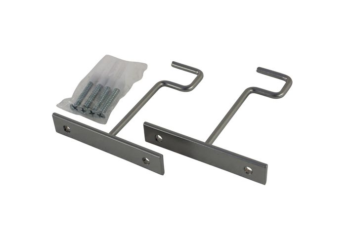 En rejäl distanskrok som säljs i 2-pack och finns i två olika färger. Använd till att fästa upp väggspaljén, ampel eller redskap. Plugg och skruv medföljer.