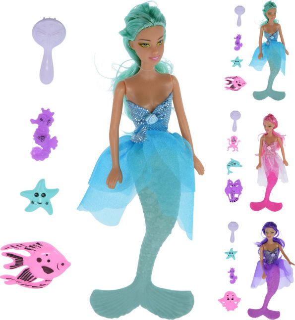 Sjöjungfru med olika tillbehör.
