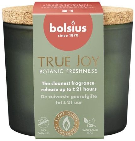Ljuset innehåller naturligt veganskt vax och helt fritt från palmolja, vilket gör det till ett mer miljövänligt alternativ. Med Bolsius True Joy doftljus kan du skapa en avkopplande och lyxig atmosfär.