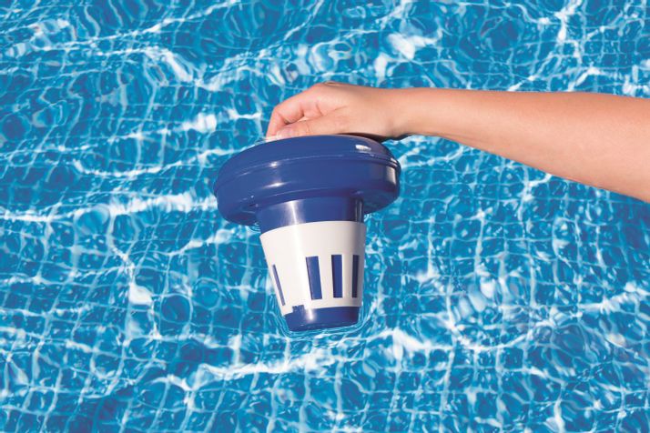 Doseringsflottör som flyter på vattenytan, doseringskraften kan regleras genom att justera upp eller ner vattenflödet.Sprider och löser upp kemiska tabletterJusterbar ratt för att kontrollera utsläppet av kemikalierTabletter ingår ejKonstruerad för att dra ihop sig