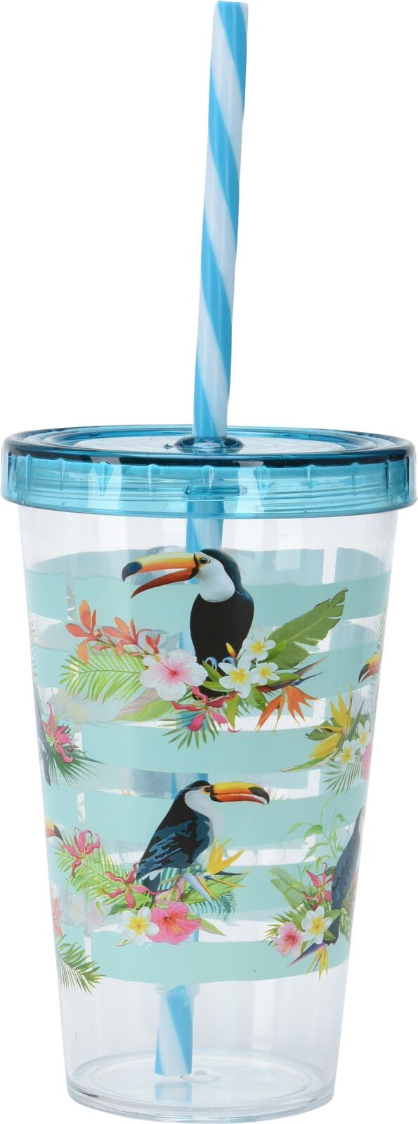 Trevlig mugg med blandade motiv. Lock och sugrör ingår.