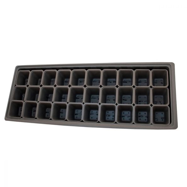 Lite större drivhus för hemmaodling av blommor, kryddor och grönsaker. Har ett transparent vändbart lock för att kunna ge plantorna den ventilation de behöver. Innehåller 30 st insatskrukor i grått.