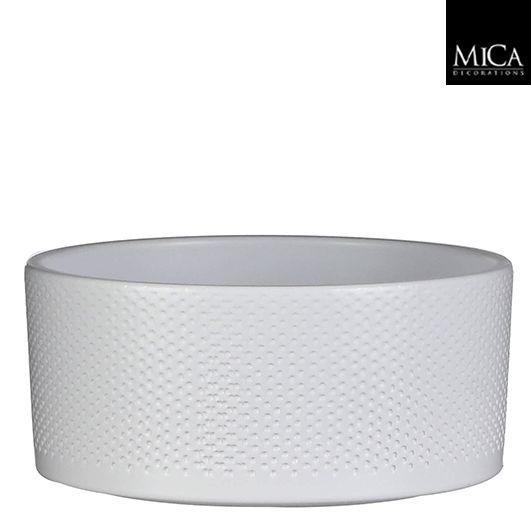 Klassisk vit skål med mönster i form av små prickar i runt format.