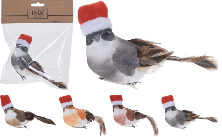 Fågel på klämma med tomteluva.Finns i 4 olika utföranden.Ange ev. önskemål om specifik modell i meddelanderuta vid utcheckning.