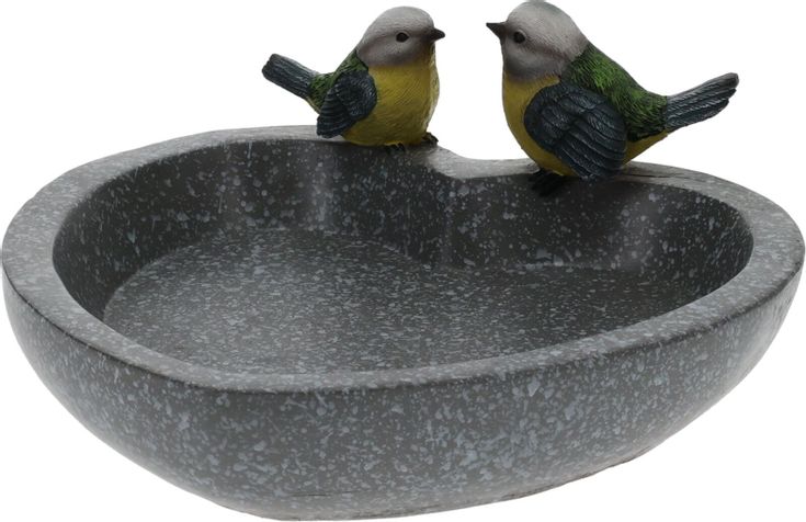 Fint fågelbad dekorerad med fåglar, tillverkad i polystone.