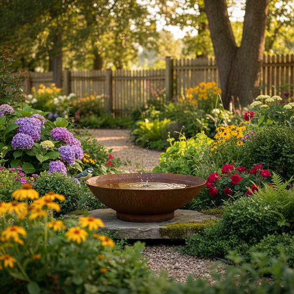 Fågelbad eller varför inte en vattenspegel i trädgården. Oavsett så är denna tillverkad av 1 mm obehandlad corten, vilket gör den väldigt tålig mot både värme och kyla. Mått: Ø48,5xHXX cm