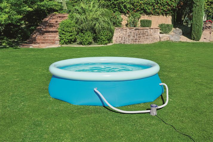 Bestways pool Fast Set är en härlig familjepool att svalka sig i under varma sommardagar. Poolen är tillverkad av två lager PVC för extra slittålighet och stabilitet och är utrustad med filterpumpen Flowclear™.