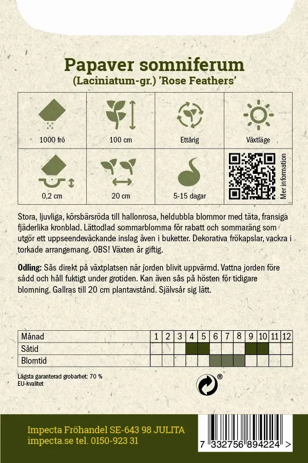 - Portionsmängd: 1000 frö
