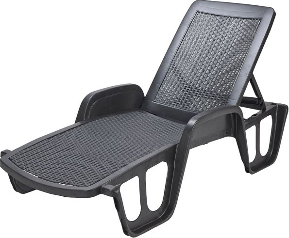 Flores solsäng är tillverkad i formgjuten antracitgrå plast. Solsängen har justerbar rygg och är stapelbar.