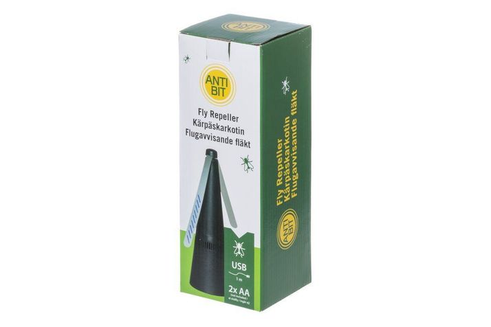 Flugskrämman är en praktisk produkt för matbordet, grillen och platser där du vill hålla flugorna borta. De mjuka bladen roterar långsamt och är säkra. Motorn stannar vid kontakt och startar om automatiskt.