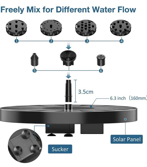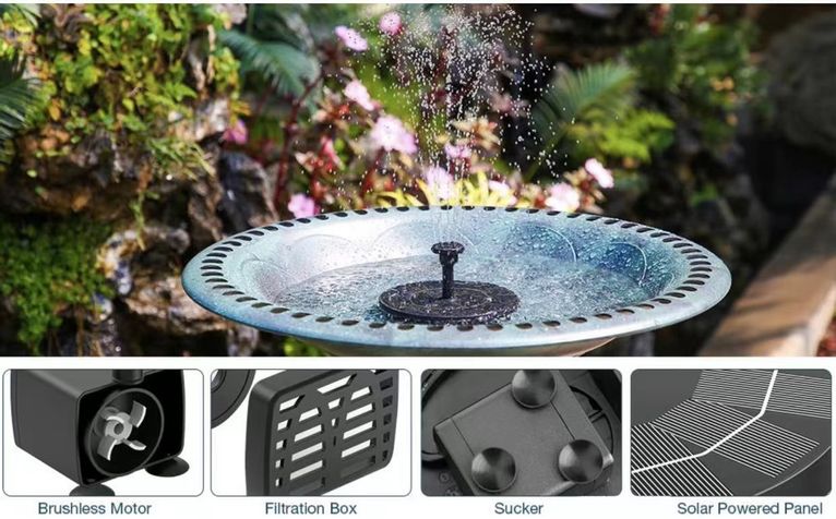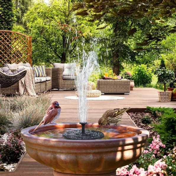 Lägg din fontän i fågelbadet eller din damm – vänta på solen och se vattnet flöda!