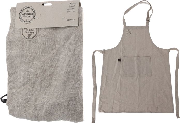Beiget förkläde i bomull med läderögla.