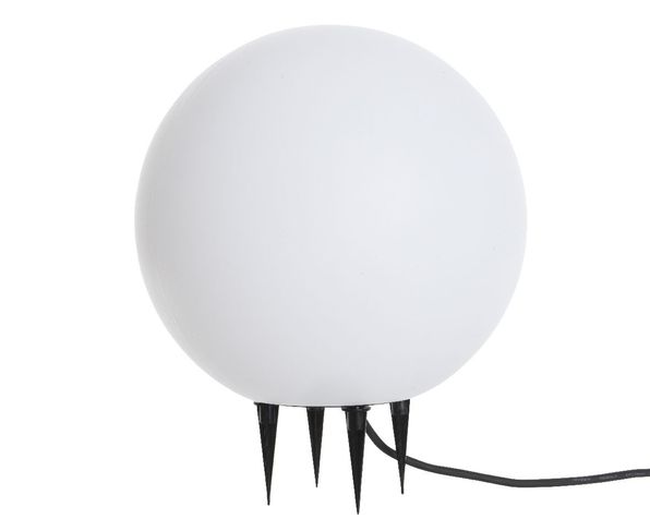 Ljusboll som har en E27 sockel invändigt och därför kan du själv välja vilken ljuskälla du vill ha. (Ingår ej) 5 meter kabel. Markspjut ingår om du vill sätta bollen i t.ex rabatten. 230V, IP65.