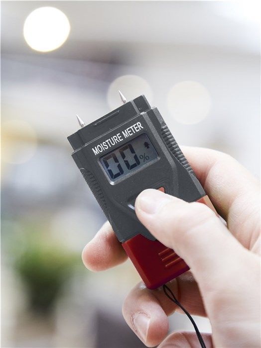 Praktisk fuktmätare för att mäta fukt i trä och byggmaterial.