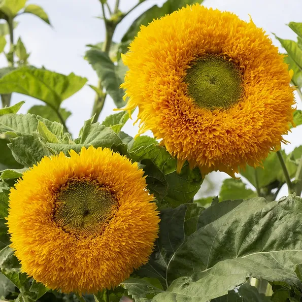 Lysande orange, heldubbla blommor med stor limegrön mitt, även någon enklare blomma kan förekomma. Stadiga stjälkar med en stor blomma på varje. Utmärkt bakgrundsväxt i rabatter och lång hållbarhet även till snitt.