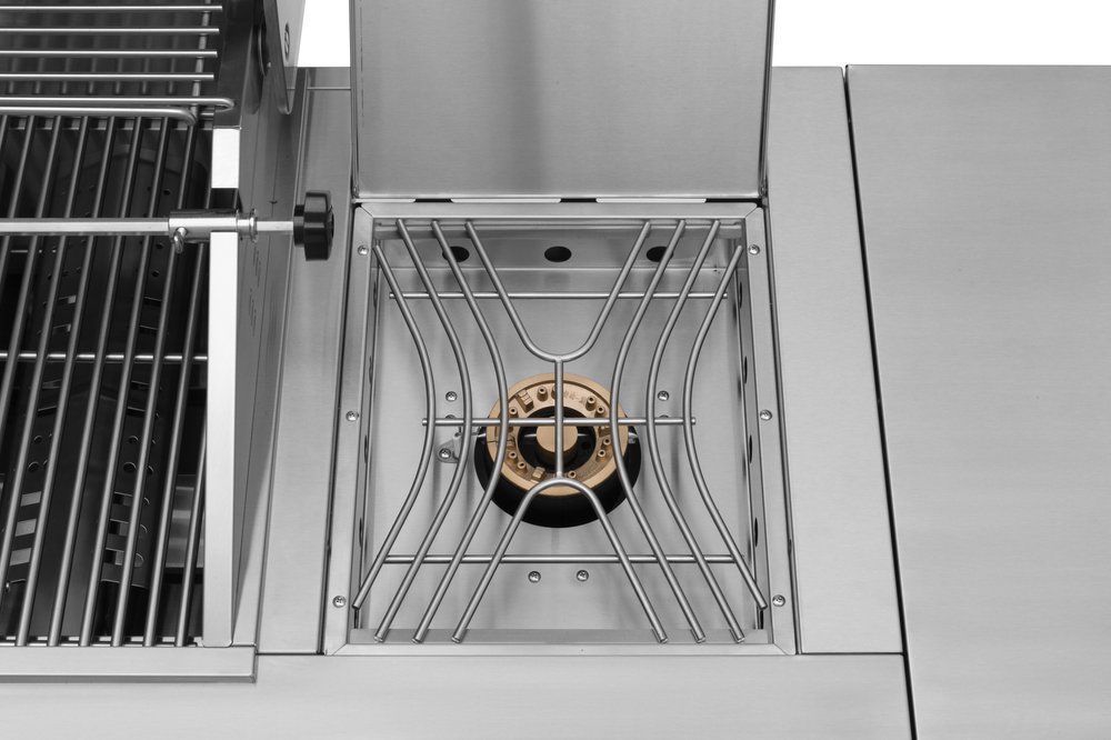 Ametist är kungen på terrassen, och fullständigt i rostfritt stål. På den stora 96×46 cm grillytan kan du grilla också för större sällskap. Grillen har sex effektiva brännare och infraröd spettrostare. Med sidoköket tillreder du grönsaker, potatis och såser.