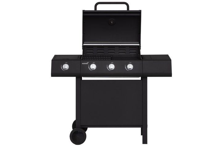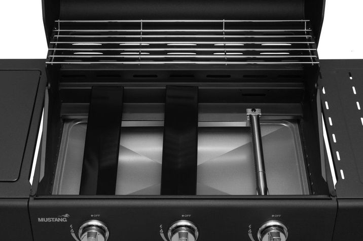 Gasolgrill med tre brännare med sidobrännare.