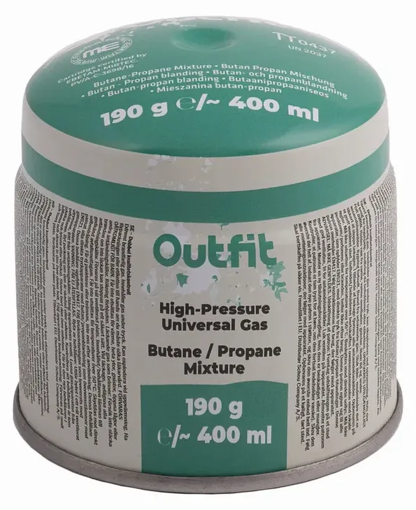 190 g gasflaska med skruvgänga och säkerhetsventil.
