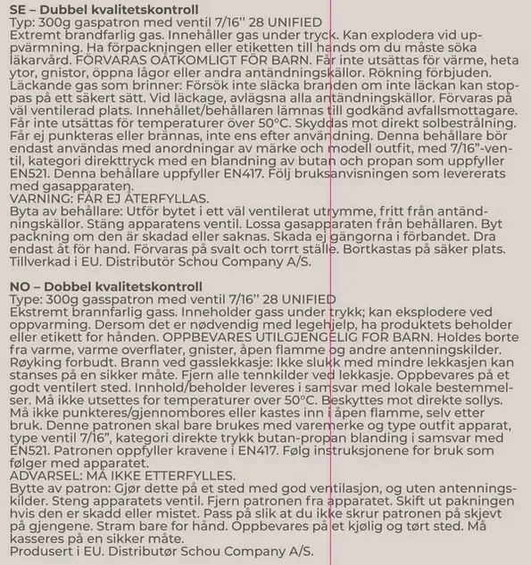 300 g gasflaska med skruvgänga och säkerhetsventil.
