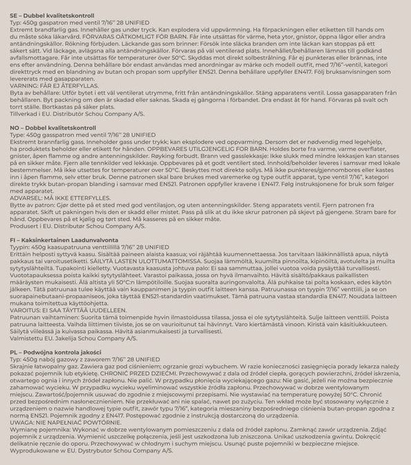 450 g gasflaska med skruvgänga och säkerhetsventil.