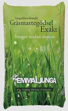 En Exakt gödselgiva tränger undan mossan. Emmaljungas Gräsmattegödsel Exakt behöver därför inte innehålla några gifter, och gör det inte heller.