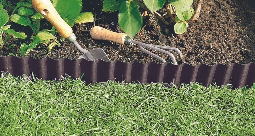 Kantskydd i plast. Placeras t.ex. mellan gräsmatta och rabatt så att gräset inte sprider sig in i rabatten. Använd till både raka och rundade former. Antracitgrå.
