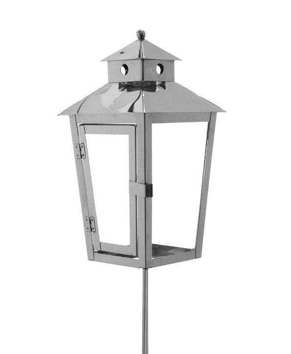 Fin gravlykta i rostfritt. Metallpinne ingår, vilket gör det enkelt att sticka ner lyktan i jorden.