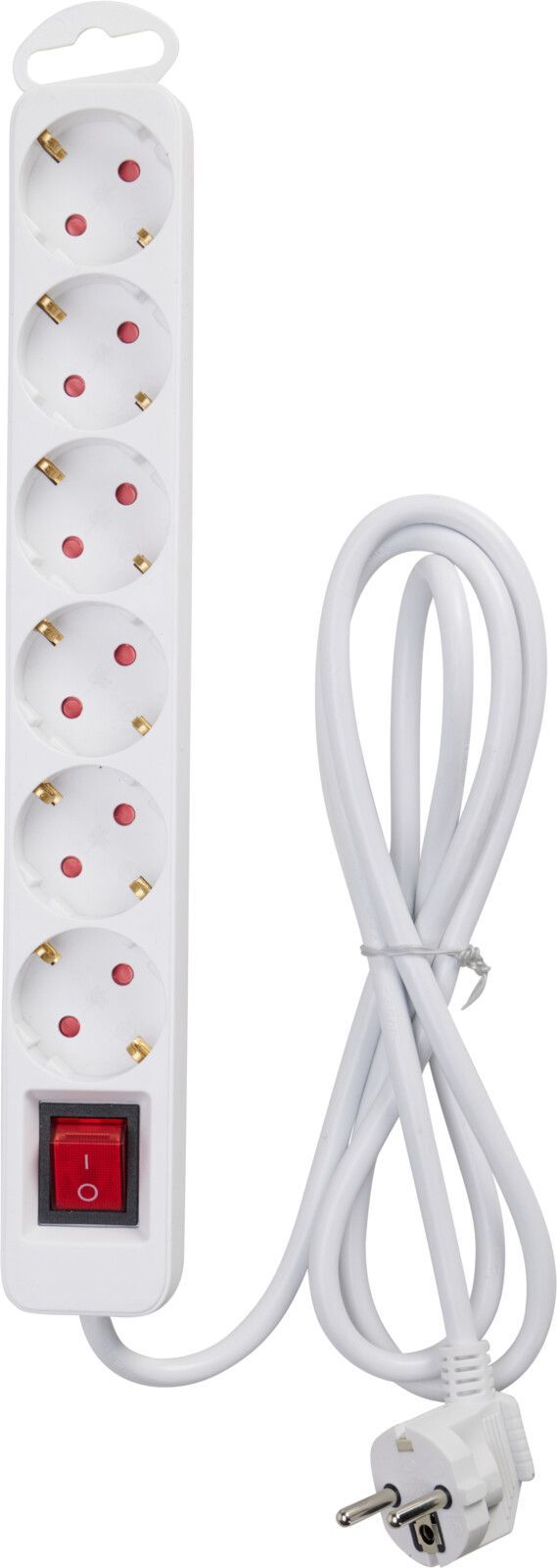 Grenkontakt som är utrustad med 6 st barnsäkra, jordade uttag och on/off knapp.