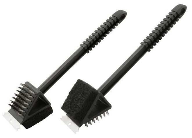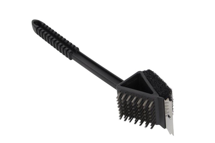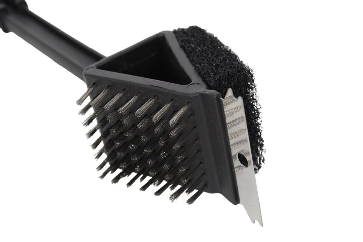 Grillborste med 3 sidor – stålborste, plastborste och stålskrapa.