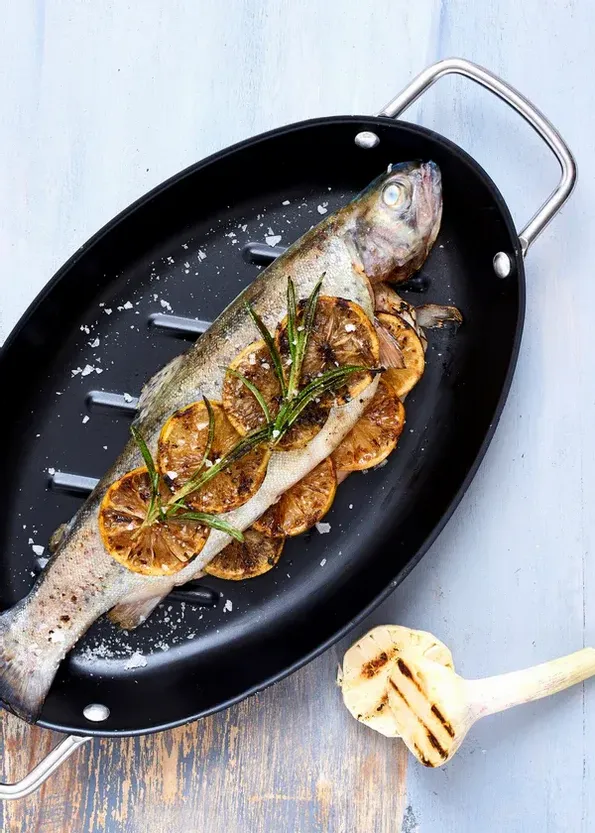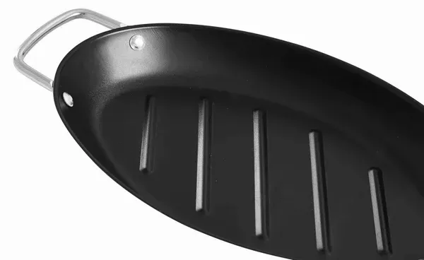 Oval stekpanna för grillen, med en non-stick beläggning, vilket gör en fantastisk grillupplevelse.