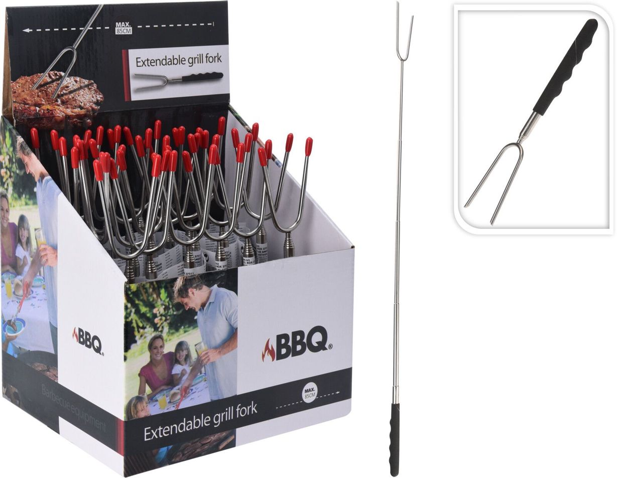 Grillgaffel med teleskophandtag med längd upp till 72 cm.