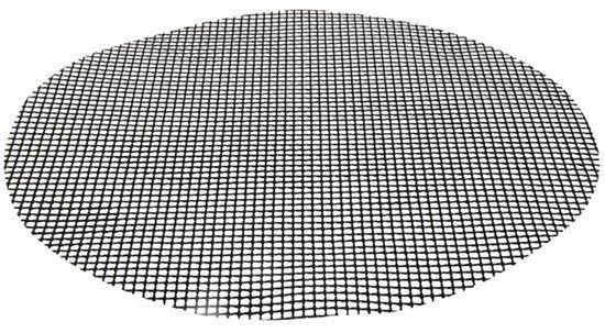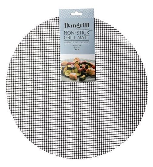 Rund grillmatta i glasfiber. Håller burgare, fisk mm på sin plats utan att brännas vid.