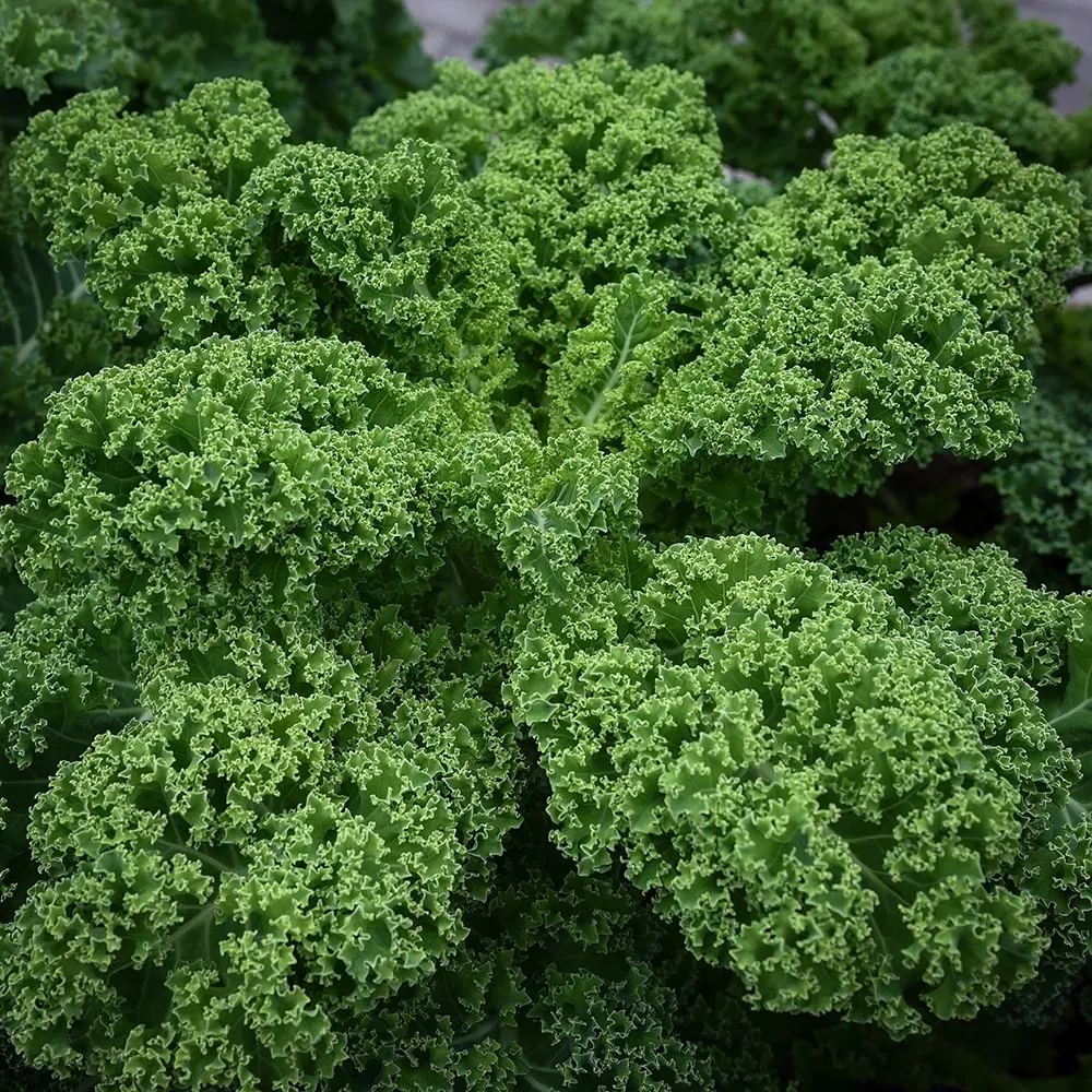 Gröna, mycket välkrusade blad på medelhöga plantor. Smakrik och full med vitaminer, både som färsk och tillagad, samt som ätbar dekoration. Köldtålig och väl anpassad för nordiskt klimat.