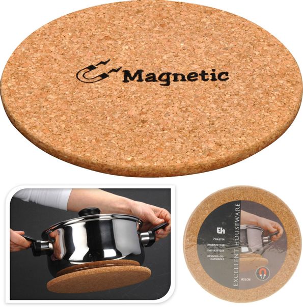 Grytunderlägg med 2 stycken magneter i sig, vilket gör att underlägget fäster sig enkelt under grytan.
