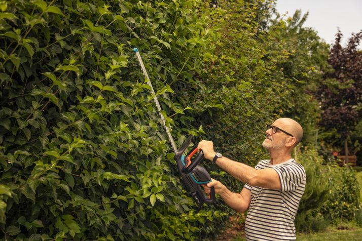 Sladdlös, lätt, säker och användarvänlig: GARDENA Batteridriven häcksax ComfortCut 50/18V P4A är helt enkelt perfekt för att klippa medelstora häckar.