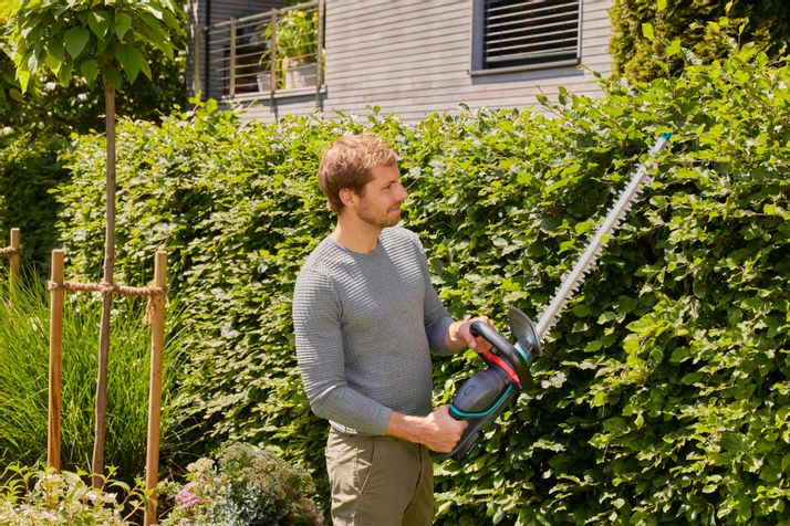 Sladdlös, lätt, säker och användarvänlig: GARDENA Batteridriven häcksax ComfortCut 60/18V P4A är helt enkelt perfekt för att klippa medelstora häckar.