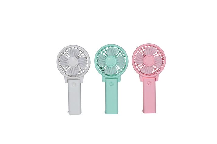 Smidig fläkt att ta med sig i väskan för varma sommardagar.Går även att vinkla för att använda som bordsfläkt.Finns i olika färger.Krävs 2 st AA batteri