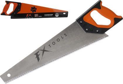 Handsåg med orange skaft och skydd.