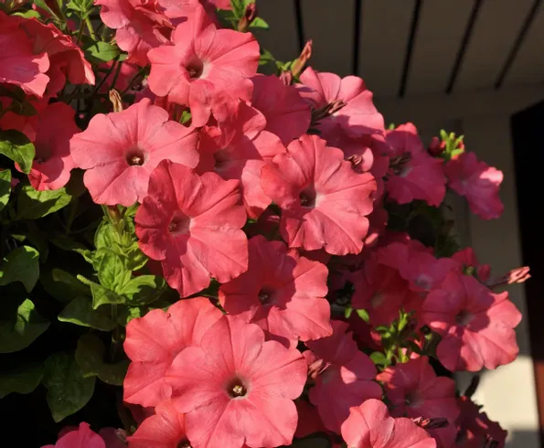 Intensivt rikblommande med 50-75 cm långa rankor täckta av 5-7 cm stora blommor i varmt korallrosa. Praktfull i amplar och större krukor.