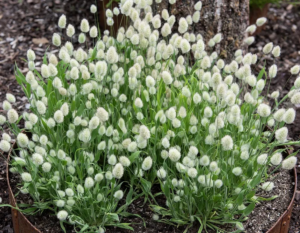 Låg variant av prydnadsgräset harsvans. Kompakta tuvor med bedårande små, vita vippor i mängder över bladverket. Mycket användbar i rabatter och krukor. Vipporna kan torkas till arrangemang.