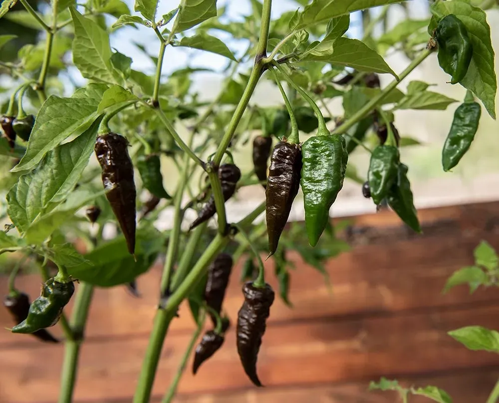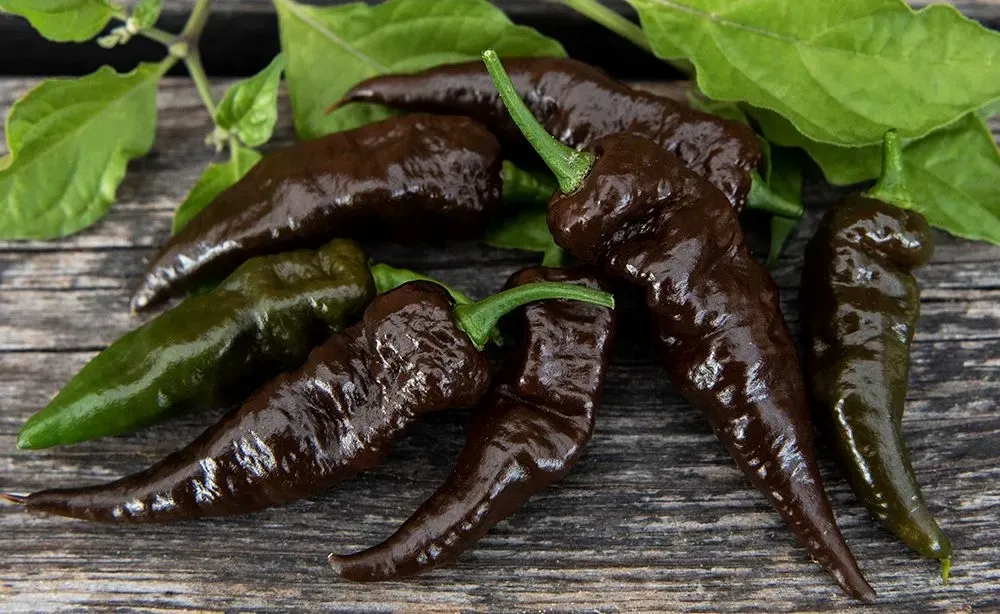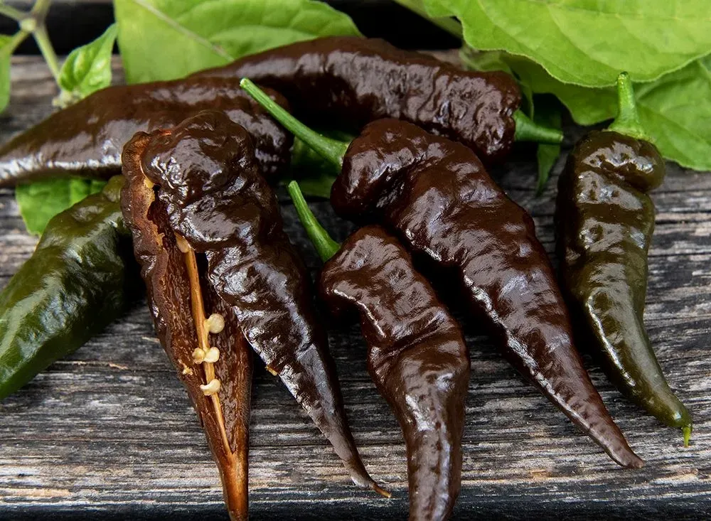 Mörkt purpurbruna till näst intill svarta, avlånga och rynkiga frukter, ca 6 cm långa. Fruktig arom med markant hetta. Produktiv och relativt snabbväxande chilisort. Används med försiktighet! 800 000-1 000 000 Scoville.