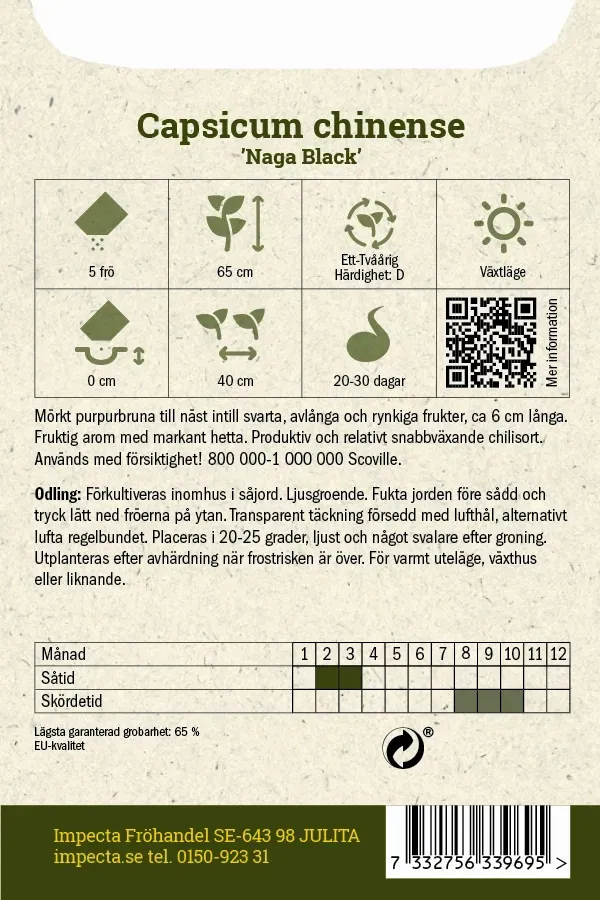 Utplanteras efter avhärdning när frostrisken är över. För varmt uteläge, växthus eller liknande. Benämns även som: Chilipeppar