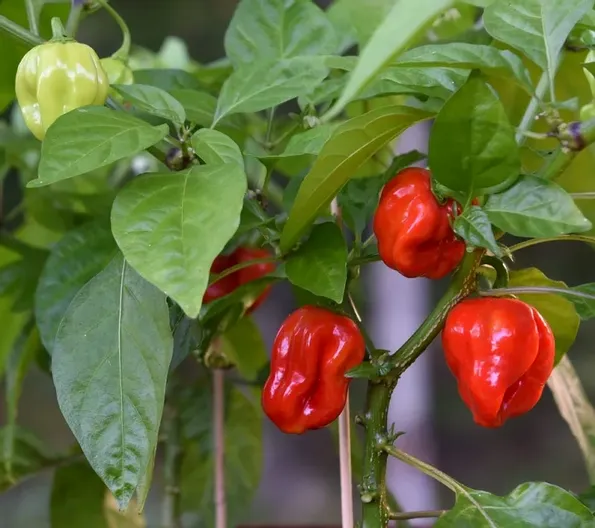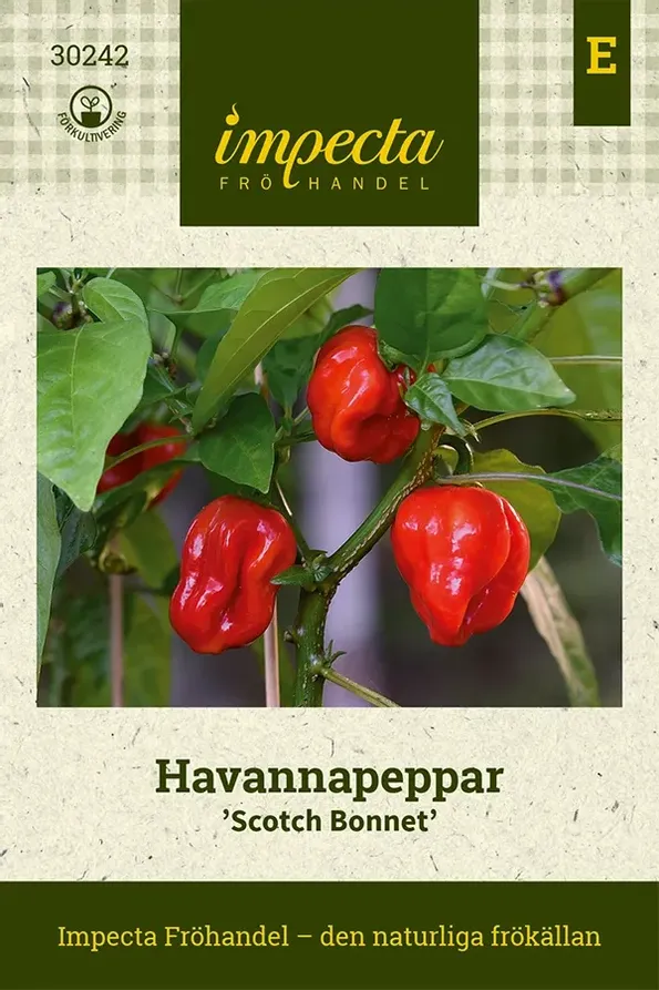 Starkt veckade, ca 4-6 cm långa, vackert glänsande frukter som mognar till rödorange. Karaktäristisk habanero med den aromatiskt fruktiga smaken med tydlig hetta. Välgrenande växtsätt, utmärkt även för krukodling. 325 000-350 000 Scoville.