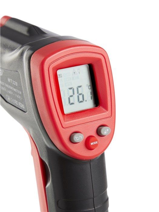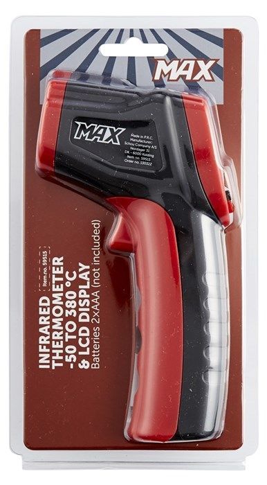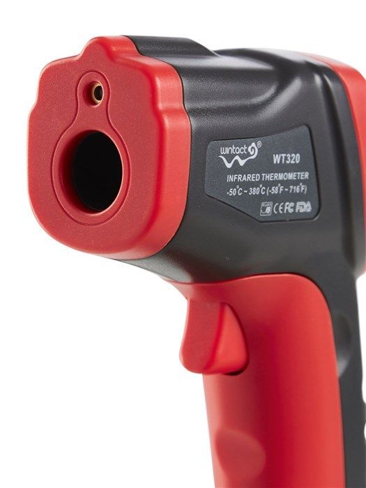 Kompakt infraröd termometer med temperaturområde från -50 till +380 grader.