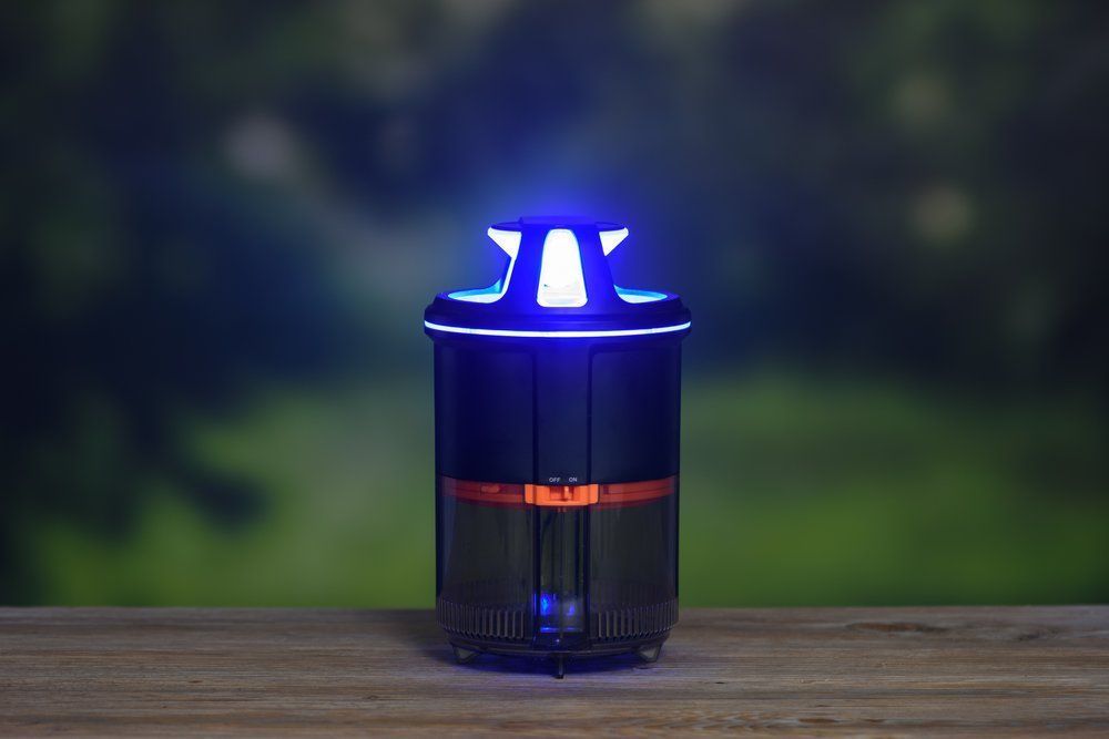 Insektsfällfläkten använder ultraviolett ljus för att locka insekter till fällan, där fläkten suger in dem i behållaren.
